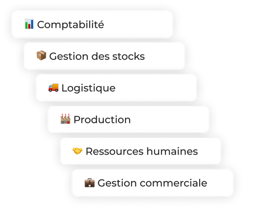 Quand les outils se multiplient — compta séparée, CRM isolé, fichiers partagés, logiciels de stock indépendants — la gestion devient lente, coûteuse et risquée. Les équipes perdent en efficacité et l’information circule mal.